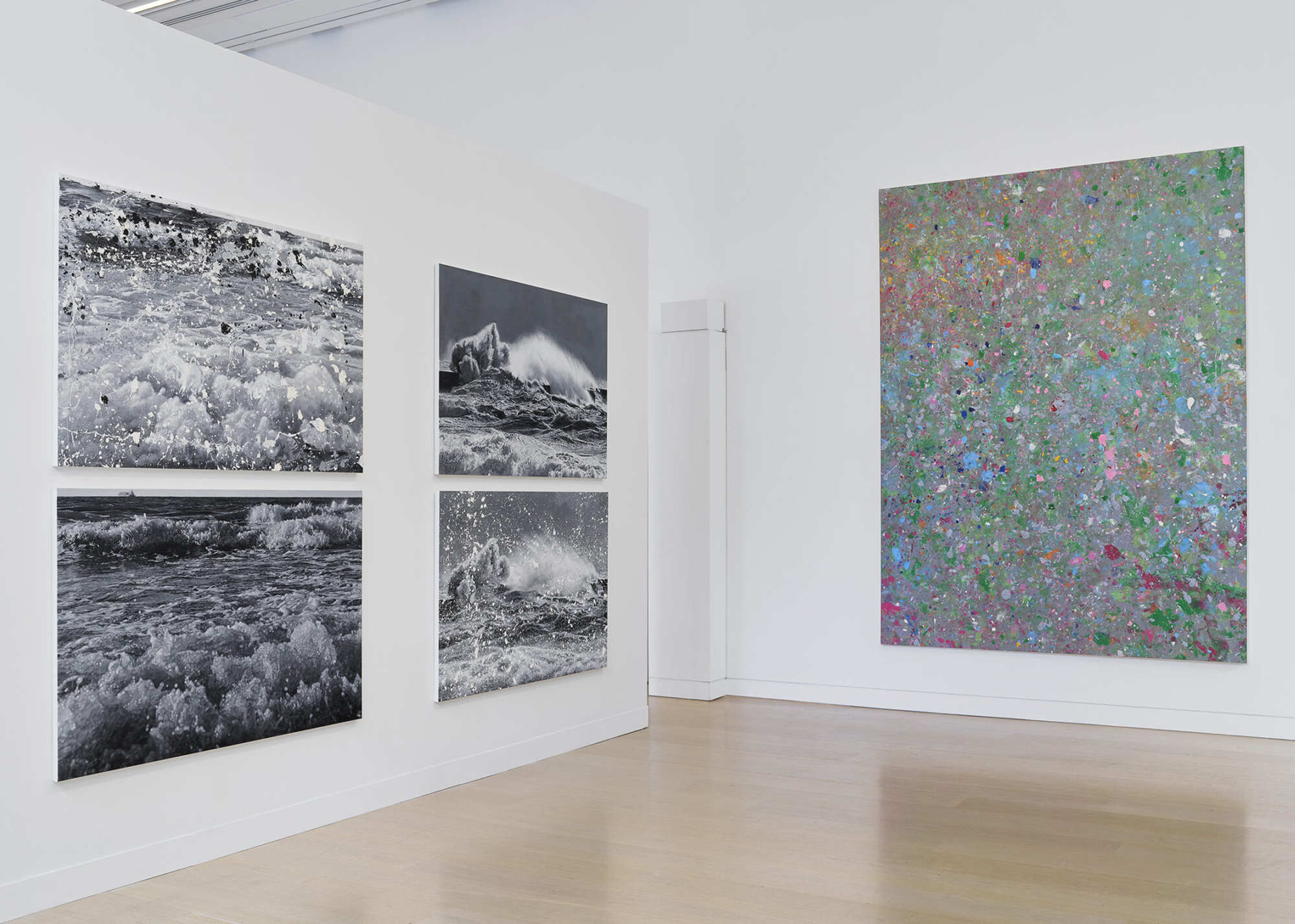 ‘Where the Land Meets the Sea’ evokes Hirst’s pastime of walking on the beach and watching the sea, most recently in the UK during the winter. For these works, Hirst draws influence from Abstract Expressionism, specifically Robert Motherwell’s ‘Beside the Sea’ paintings from the 1960s. Expanding on the tenets of the iconic ‘Cherry Blossom’ and developed in parallel to these, the works are a joyous continuation of his career long investigation into painting.